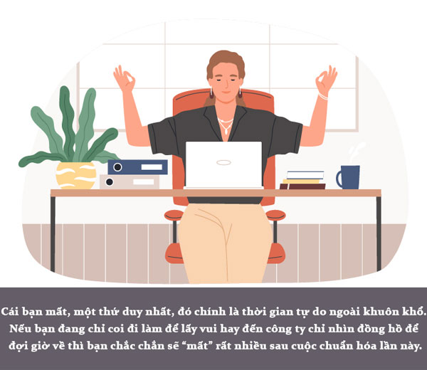Cái bạn mất, một thứ duy nhất, đó chính là thời gian tự do ngoài khuôn khổ. Nếu bạn đang chỉ coi đi làm để lấy vui hay đến công ty chỉ nhìn đồng hồ để đợi giờ về thì bạn chắc chắn sẽ “mất” rất nhiều sau cuộc chuẩn hóa lần này. Chuẩn hóa là dịp bạn nhìn nhận lại bản thân, Công ty cũng sẽ đánh giá lại bạn. Trong công cuộc lần này, buộc bạn phải chuẩn hóa lại tác phong làm việc của mình. Nếu không nâng cao năng lực, bạn rất dễ bị bỏ lại phía sau.