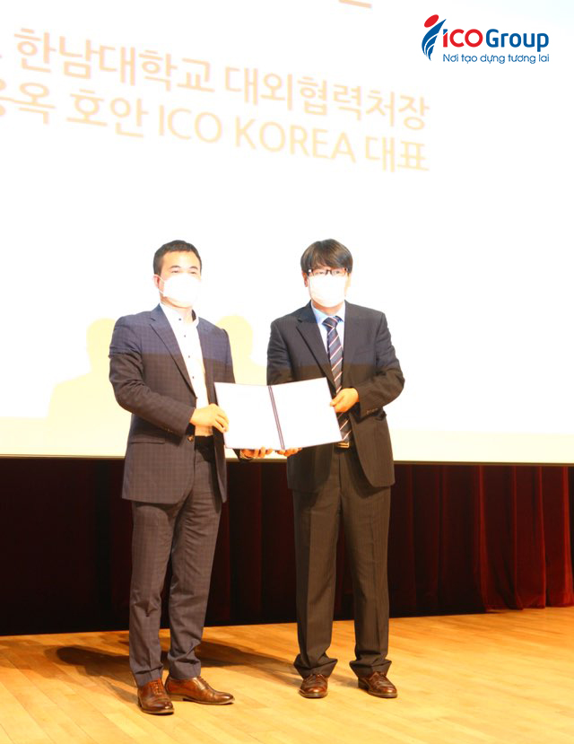 Tại chương trình đã diễn ra lễ ký kết và trao thỏa thuân hợp tác giữa Đại học Hannam và ICO Korea, bước đầu khẳng định mối quan hệ chiến lược giữa 2 đơn vị.