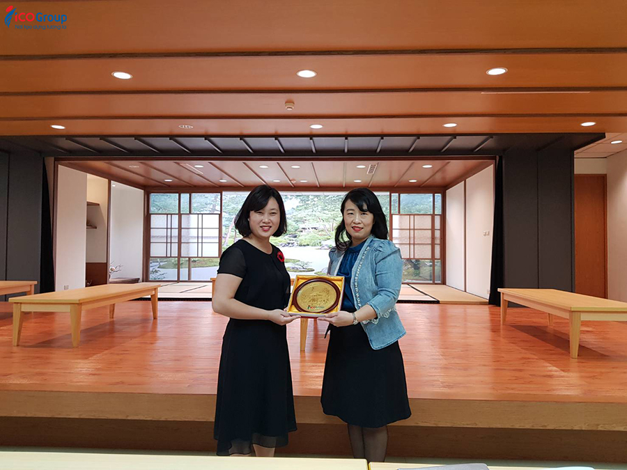 Ảnh: Bà Nghiêm Thị Thủy Tiên (bên trái) trong buổi làm việc với Trường ĐHKTKT Cao Uyển