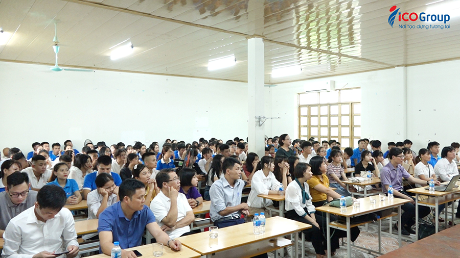Ảnh: Thày cô và các em học sinh thăm quan cơ sở vật chất nơi đào tạo XKLĐ của ICOGroup