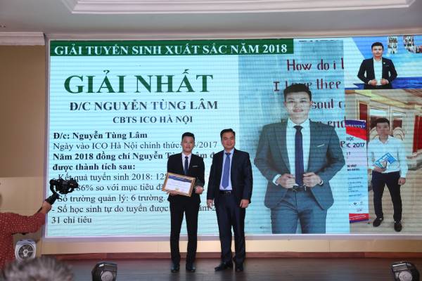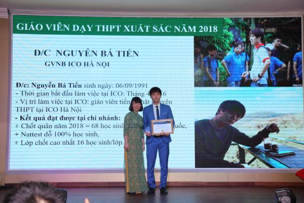 Chia sẻ tại buổi lễ tôn vinh, anh Nguyễn Bá Tiến – Giáo viên dạy THPT xuất sắc của chi nhánh ICO Hà Nội cũng bày tỏ lời cảm ơn chân thành đến Ban lãnh đạo và hứa sẽ cố gắng nhiều hơn nữa trong thời gian tới để hoàn thành tốt nhiệm vụ được giao, đóng góp vào sự phát triển của chi nhánh nói riêng và Tập đoàn ICOGroup nói chung.