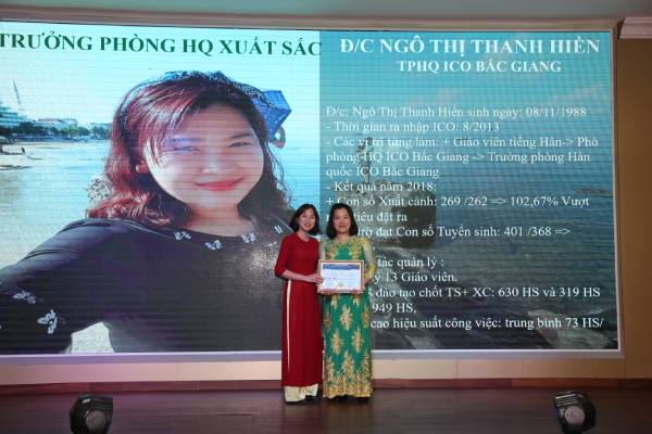 – Hạng mục giải thưởng được trao cho 17 gương mặt gồm 5 Giám đốc xuất sắc: Giám đốc ICO Bắc Giang – Nguyễn Thị Phượng, Giám đốc ICO TP HCM – Hoàng Minh Tuấn, Giám đốc ICO Nghệ An – Đỗ Hoành Bá, Giám đốc ICO Thanh Hóa – Bùi Văn Huân, Giám đốc ICO Japan – Nguyễn Mậu Kiên và 12 cá nhân đại diện các phòng ban, đơn vị chi nhánh của ICOGroup trên toàn quốc.