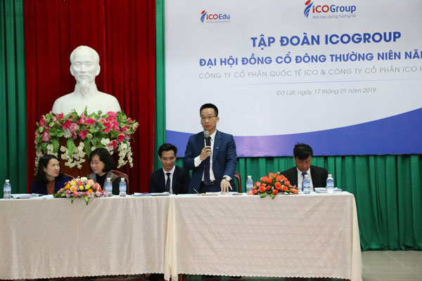 Ngày 17/01/2019 tại thành phố Đà Lạt, hai Tổng công ty trực thuộc Tập đoàn ICOGroup là Công ty cổ phần quốc tế ICO (ICO Edu) và Công ty cổ phần ICO Holdings (ICO Holdings) đã tổ chức thành công Đại hội đồng cổ đông thường niên. Đại hội đã thông qua nhiều nội dung quan trọng trong đó có việc bầu Hội đồng quản trị, báo cáo kết quả kinh doanh và định hướng, mục tiêu năm 2019.