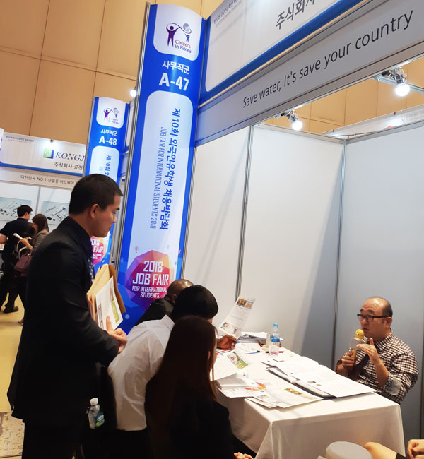 Vào hai ngày 1 và 2/10/2018 vừa qua, Bộ Thương mại Công nghiệp & Năng lượng cùng với Bộ Giáo dục, Cơ quan xúc tiến thương mại và đầu tư Hàn Quốc (KOTRA) và Viện quốc gia nghiên cứu giáo dục quốc tế đã tổ chức Hội chợ việc làm cho sinh viên nước ngoài tại Trung tâm triển lãm quốc gia COEX Seoul.
