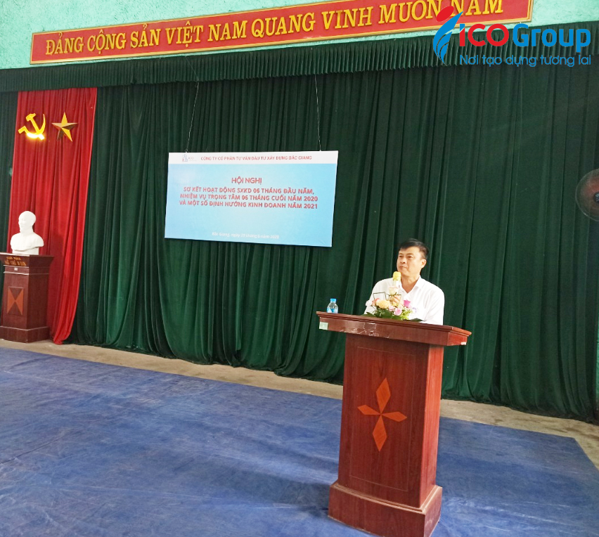 Chiều ngày 29/6/2020, tại Nhà đa năng, Công ty Cổ phần Tư vấn Đầu tư và Xây dựng Bắc Giang (ICOConstruction) đã tổ chức "Hội nghị sơ kết công tác 6 tháng đầu năm và triển khai nhiệm vụ 6 tháng cuối năm 2020". Tới dự, có ông Nguyễn Quang Tuấn – Chủ tịch Tập đoàn ICOGroup, ông Nguyễn Quang Minh – Tổng Giám đốc ICOHoldings cùng Ban lãnh đạo ICOConstruction và toàn thể CBNV trong công ty.
