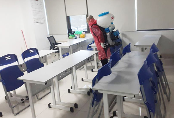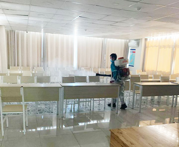 Tất cả khu vực học tập và làm việc tại các đơn vị đều được khử trùng, sát khuẩn