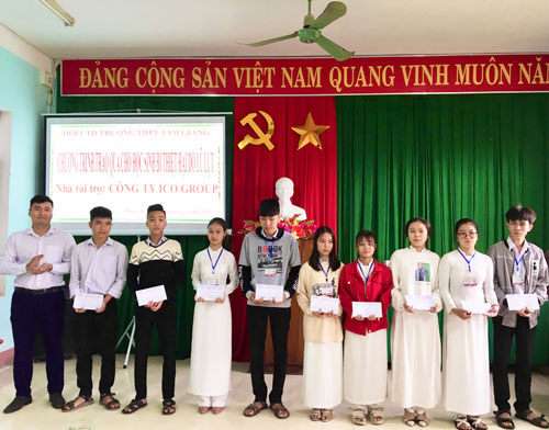 - Tại tỉnh Thừa Thiên Huế: ICOGroup đã hỗ trợ cho 37 học sinh, cán bộ và 7 trường THPT gồm: Phong Điền, Đặng Huy Trứ, Phan Đăng Lưu, Hóa Châu, Nguyễn Chí Thanh, Trần Văn Kỷ và Đặng Huy Trứ với tổng số tiền là 28.000.000 đồng.