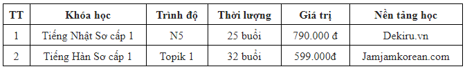 Dekiru là một trong những nền tảng học tiếng Nhật đầu tiên và tốt nhất tại Việt Nam với hơn 50.000 học viên trong và ngoài nước theo học. Trong khi đó, Jamjamkorean được xây dựng dựa trên giáo trình tiếng Hàn độc quyền và tiên tiến nhất của trường Đại học Ngoại ngữ Hàn Quốc.