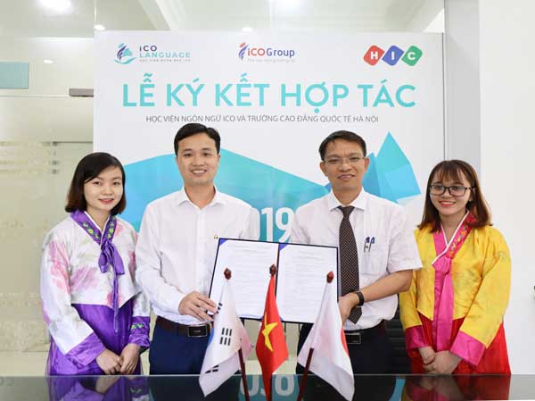 Ngày 25/9/2019, Học viện ngôn ngữ ICO (ICOLanguage) đã có buổi ký kết hợp tác chính thức với trường Cao đẳng Quốc tế Hà Nội (HIC). Tham dự buổi ký kết, về phía trường Cao đẳng Quốc tế Hà Nội có thầy Nguyễn Văn Sinh – Chủ tịch HĐQT nhà trường. Về phía ICOLanguage có thầy Nguyễn Quang Đức Tổng Giám đốc ICOLanguage.