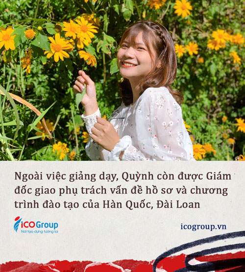 Ngoài việc giảng dạy, tôi được Giám đốc giao phụ trách vấn đề hồ sơ cũng như chương trình đào tạo của Hàn Quốc và Đài Loan. Ban đầu, tôi thấy có chút bỡ ngỡ và khó khăn. Tuy nhiên được sự giúp đỡ, hỗ trợ và chỉ bảo của sếp, các anh chị trong công ty cũng như các anh chị phòng hồ sơ mà tôi đã làm quen và bắt đầu vào công việc được tốt hơn. Tất nhiên không thể tránh khỏi những sai sót trong quá trình làm việc, nhưng thật may vì tôi luôn nhận được những lời khuyên, những phương hướng giải quyết vấn đề của anh chị trong đơn vị. Nhờ đó, tôi mới rút ra được kinh nghiệm cũng như tích lũy thêm nhiều kỹ năng nghiệp vụ.