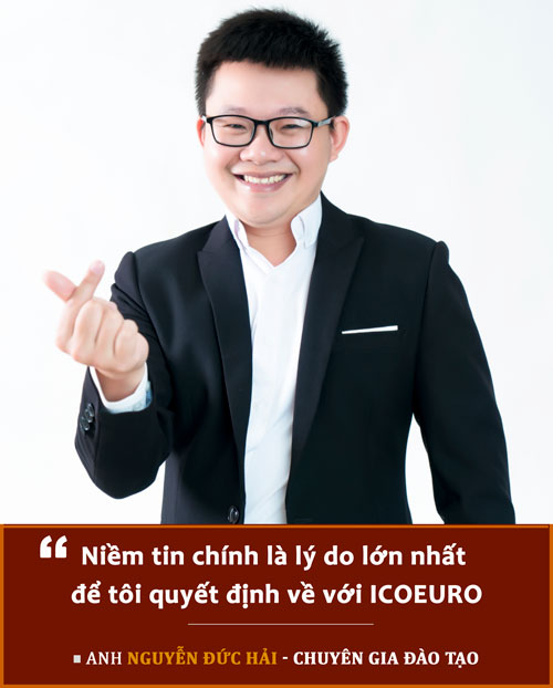 Có một câu mà tôi cũng nghe lãnh đạo chia sẻ nhiều tại ICOEURO là "con người đi trước, công việc theo sau". Tôi nghĩ niềm tin chính là lý do để tôi quyết định về với ICOEURO vào thời điểm này.