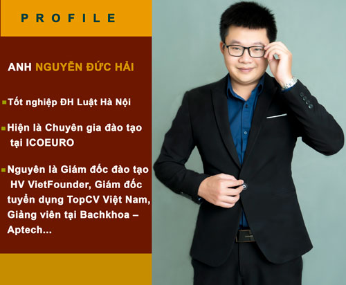 Trong những gương mặt mới gia nhập Tập đoàn ICOGroup gần đây, anh Nguyễn Đức Hải – Chuyên viên đào tạo của ICOEURO khiến nhiều người tò mò về “profile” của mình. Bởi trải qua rất nhiều vị trí công tác tại các đơn vị lớn như Giám đốc đào tạo Học viện VietFounder, Giám đốc tuyển dụng TopCV Việt Nam, Giảng viên tại Bách Khoa Aptech… nhưng khi được hỏi về thành công, anh lại có quan niệm rất khác.