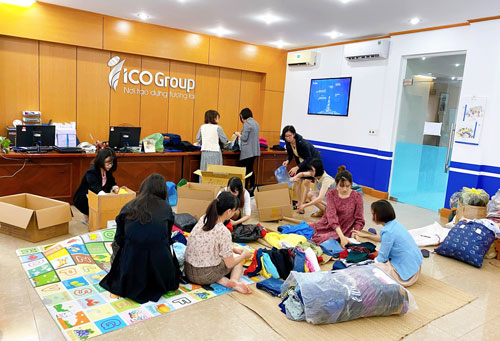 Bên cạnh việc ủng hộ bằng tiền, các nhu yếu phẩm cần thiết cho cuộc sống người dân vùng lũ cũng được Người ICO quyên góp như: mì tôm, áo phao, quần áo ấm, chăn gối, đèn pin... Ai cũng cảm thấy hạnh phúc khi được đóng góp một chút vật chất của mình cho người dân đang phải chịu thiên tai. Và dường như tình người ICO càng tỏa sáng hơn bao giờ hết khi biết gắn kết và sẻ chia với nhau.