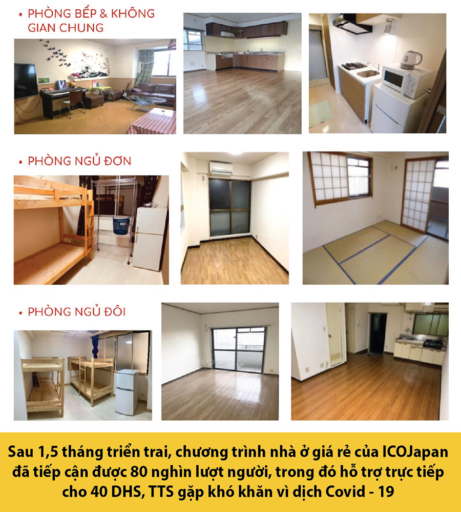 Sau 1,5 tháng triển khai chương trình nhà ở giá rẻ cho du học sinh, thực tập sinh Việt Nam tại Nhật Bản, đến nay, chương trình do ICOJapan tổ chức đã tiếp cận được 80 nghìn lượt người và hỗ trợ cho 40 du học sinh, thực tập sinh gặp khó khăn vì dịch Covid - 19 tìm được nhà ở giá rẻ.