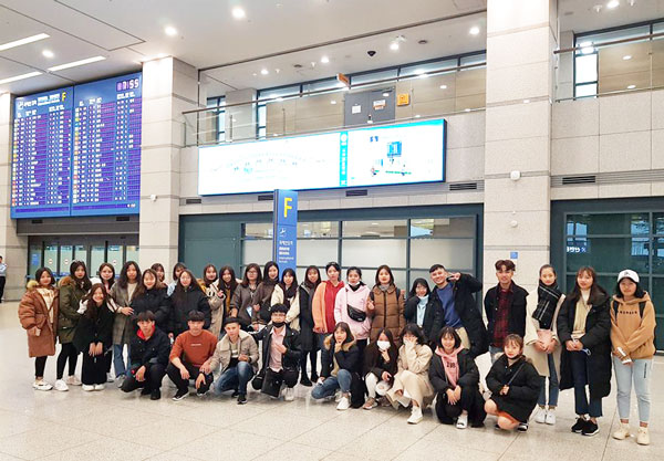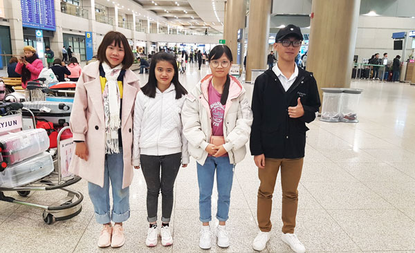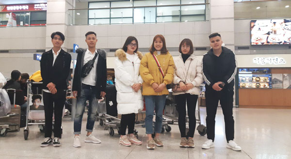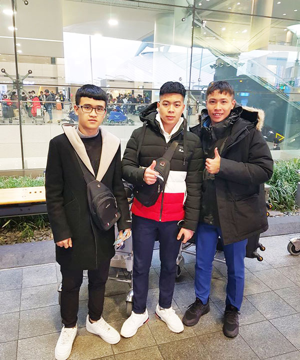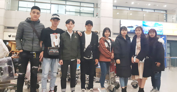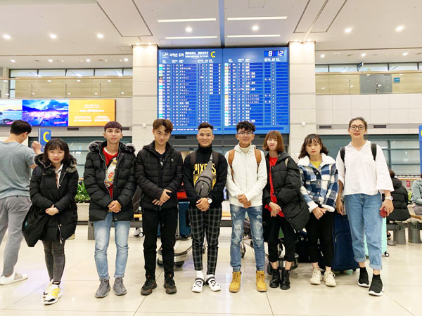 Trần Ngọc Hiệp (ngoài cùng bên trái) cùng các bạn học sinh của ICOGroup nhập học trường Đại học Kumoh