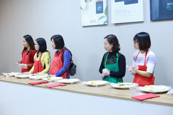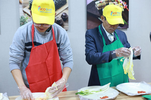 Đoàn được trải nghiệm làm món kim chi – món ăn truyền thống nổi tiếng của người Hàn Quốc