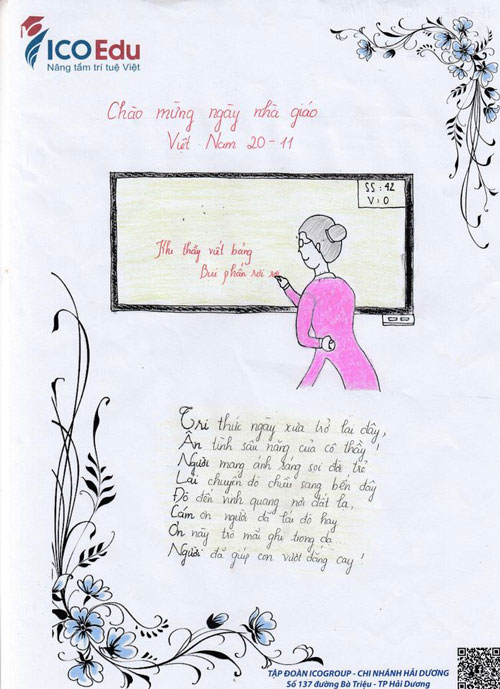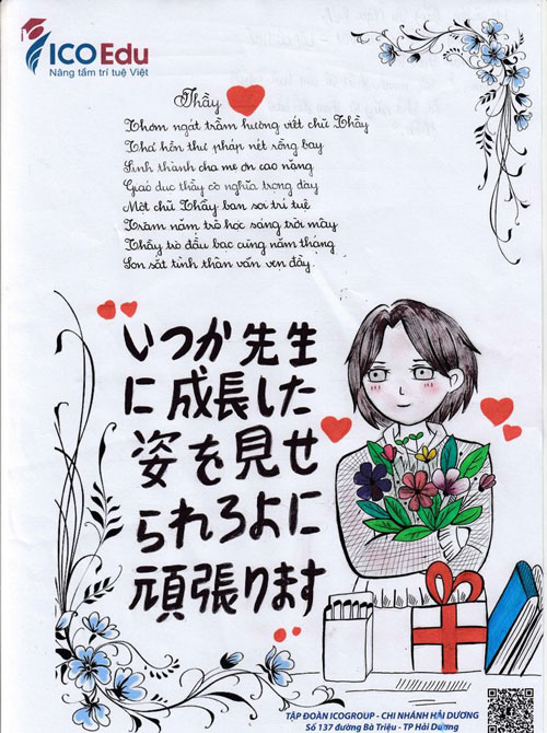 Ở nhiều chi nhánh của ICOGroup đã phát động cuộc thi để các bạn học viên có cơ hội được bày tỏ những tình cảm đáng quý của mình dành cho các thầy cô giáo đang giảng dạy. Ngày thường, không phải lúc nào các em cũng dễ dàng nói ra những cảm xúc, suy nghĩ của mình. Đây là dịp để các em chia sẻ, gửi gắm những tình cảm yêu thương đến thầy cô giáo – những người đã gắn bó đặc biệt với hành trình du học của các em.