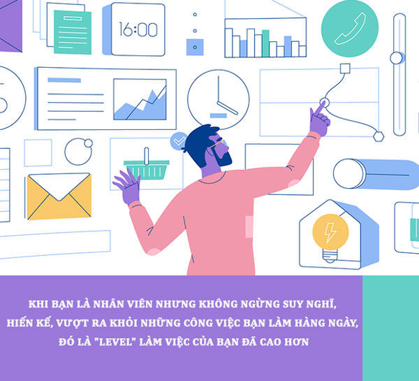 Đừng than vãn là giảm lương, cắt thưởng. Mỗi nhân viên là một tinh thần sáng tạo. Các bạn có thể nghĩ đường khác cho công ty, như nghĩ ra ngách sản phẩm khác, phù hợp cho thị trường trong lúc này. Khi bạn là nhân viên nhưng không ngừng suy nghĩ, hiến kế, vượt ra khỏi những công việc bạn làm hằng ngày, đó là "level" làm việc của bạn đã cao hơn, bạn đang khác biệt với 80% nhân sự còn lại trong công ty và bước dần tới vị trí của 20% những người lãnh đạo.