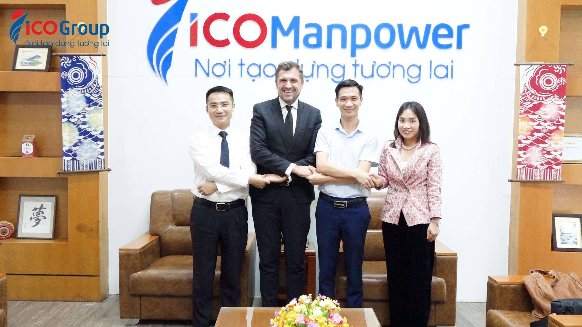 Tại buổi làm việc, hai bên đã trao đổi về các vấn đề lớn mà cả hai bên cùng quan tâm. ICOGroup hiện đang là Tập đoàn nhân lực hàng đầu Việt Nam, với trên 30 Tổng công ty, chi nhánh hoạt động ở trong và ngoài nước. Trong đó, chất lượng nguồn nhân lực mà ICOGroup cung cấp luôn được phái đối tác ở trong và ngoài nước đánh giá cao...