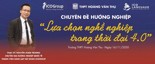 07h00 ngày 16/11/2020, tại trường THPT Hoàng Văn Thụ, nhà trường phối hợp cùng Tập đoàn ICOGroup triển khai tiết học hướng nghiệp dành cho toàn bộ học sinh nhà trường, với sự tham gia của Thạc sỹ Nguyễn Xuân Trường – Chuyên gia hướng nghiệp quốc tế - Thành viên sáng lập Tập đoàn ICOGroup. Tiết học sẽ mang lại cho học sinh một cái nhìn mới, một tư duy mới về định hướng, hướng nghiệp cho bản thân những năm tới trong dòng chảy của thế giới ngày nay.