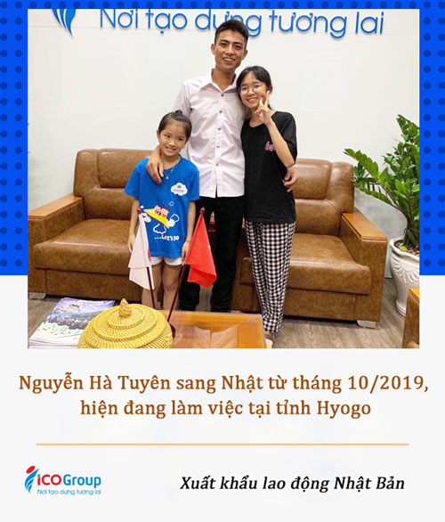 - Nguyễn Hà Tuyên: Với em phải mất khoảng 6 tháng em mới quen cuộc sống ở đây. Được làm việc tại Nhật đã giúp em thay đổi và cải thiện bản thân rất nhiều, cảm giác như mình trở thành một con người mới. Em cũng may mắn khi trong khoảng thời gian được đào tạo ở ICO, chúng em đã được chỉ bảo khá nhiều về cách sinh hoạt, cách đi lại, chào hỏi, các quy tắc và những nét đặt trưng trong văn hóa của Nhật nên em cũng làm quen và hòa nhập với cuộc sống ở đây nhanh hơn.