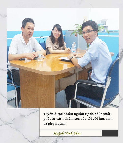 Đặc biệt, anh vừa tiếp tục được khen thưởng là cán bộ tuyển sinh xuất sắc trong mùa vàng 2020. Chia sẻ về thành tích này, anh bật mí: “Đa phần học sinh tôi tuyển nguồn tự do là người thân của học sinh tôi đã bay trước đây giới thiệu. Năm nào tôi cũng tuyển được nhiều nguồn tự do chắc có lẽ xuất phát từ cách chăm sóc của tôi với học sinh và phụ huynh. Tôi luôn cố gắng hướng dẫn, giúp đỡ các em và phụ huynh bất kể khi nào họ cần.”